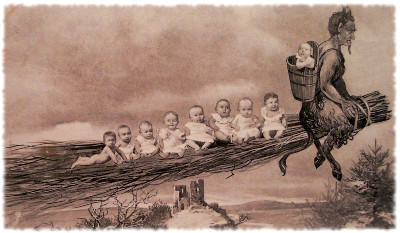 Pictured: Krampus doing what St. Nicholas never had the cojones to do -- removing naughty infants from families who deserve better. |