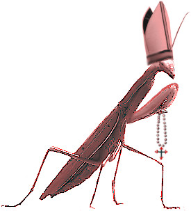 Sunday, January 26, 2025 Yesterday we were briefly introduced to Cardinal Mantis, which the Bible refers to as a four-legged insect that would be an abomination to eat — specifically Leviticus 11:20-23: "All flying insects that walk on all fours are to be regarded as unclean by you. There are, however, some flying insects that walk on all fours that you may eat: those that have jointed legs for hopping on the ground. Of these you may eat any kind of locust, katydid, cricket or grasshopper. But all other flying insects that have four legs you are to regard as unclean." Now, how stupid do you have to be to think that insects have only four legs? Apparently, the ancients were incapable of scientific observation, unable to properly categorize taxonomic ranks of organisms, and the Bible is wrong. However, as can be shown in context here, here, here, and here, the biblical reference to these "kinds" of insects is in regards to their four walking legs and two jumping legs. Insects such as Cardinal Mantis walk on four legs and use their non-walking arms for praying. Therefore, John the Baptist was limited to eating locusts (Matt 3:4, Mark 1:6), which walk on four legs. Locusts are an excellent source of protein with a mean of 50% dry weight or greater, comparable to the protein content in beef, and contain all essential amino acids except methionine. According to commercial locust purveyors Biblical Protein, "Unbelievable yet true, the locust is one of the most efficient and nutritious sources of protein God and nature have ever produced." The locusts no one will want to eat are those from Revelation 9:1-11, which science has yet to classify and which are depicted in this delightful animated short by Nina Paley (more delightful animations depicting the horrific scenes from Revelation can be viewed at Apocalypse Animated). |